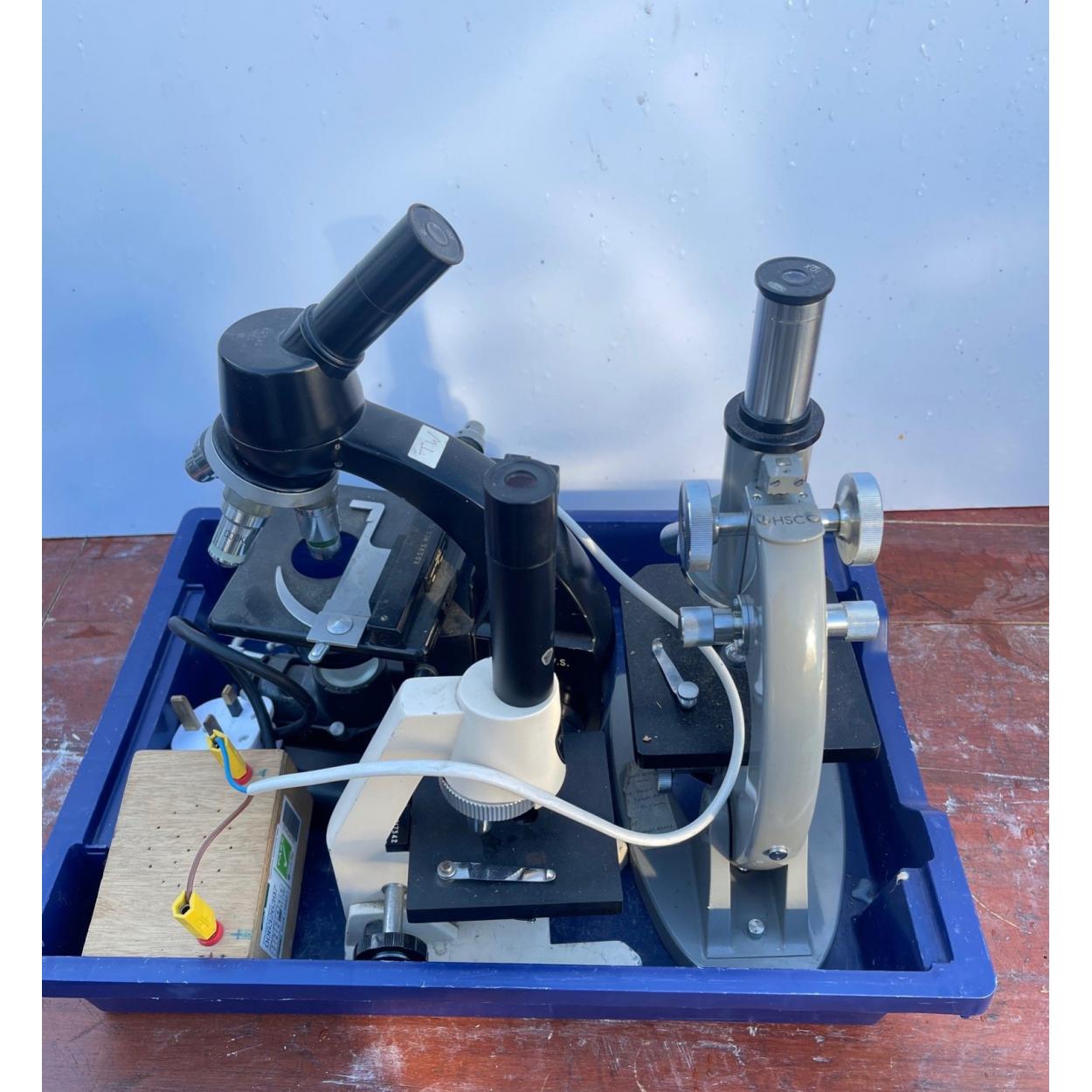 Peebles High School fund raising - A collection of science dept microscopes by COOKE TROUGHTON & SIMMS LTD, TECNAR SWIFT & OLYMPUS