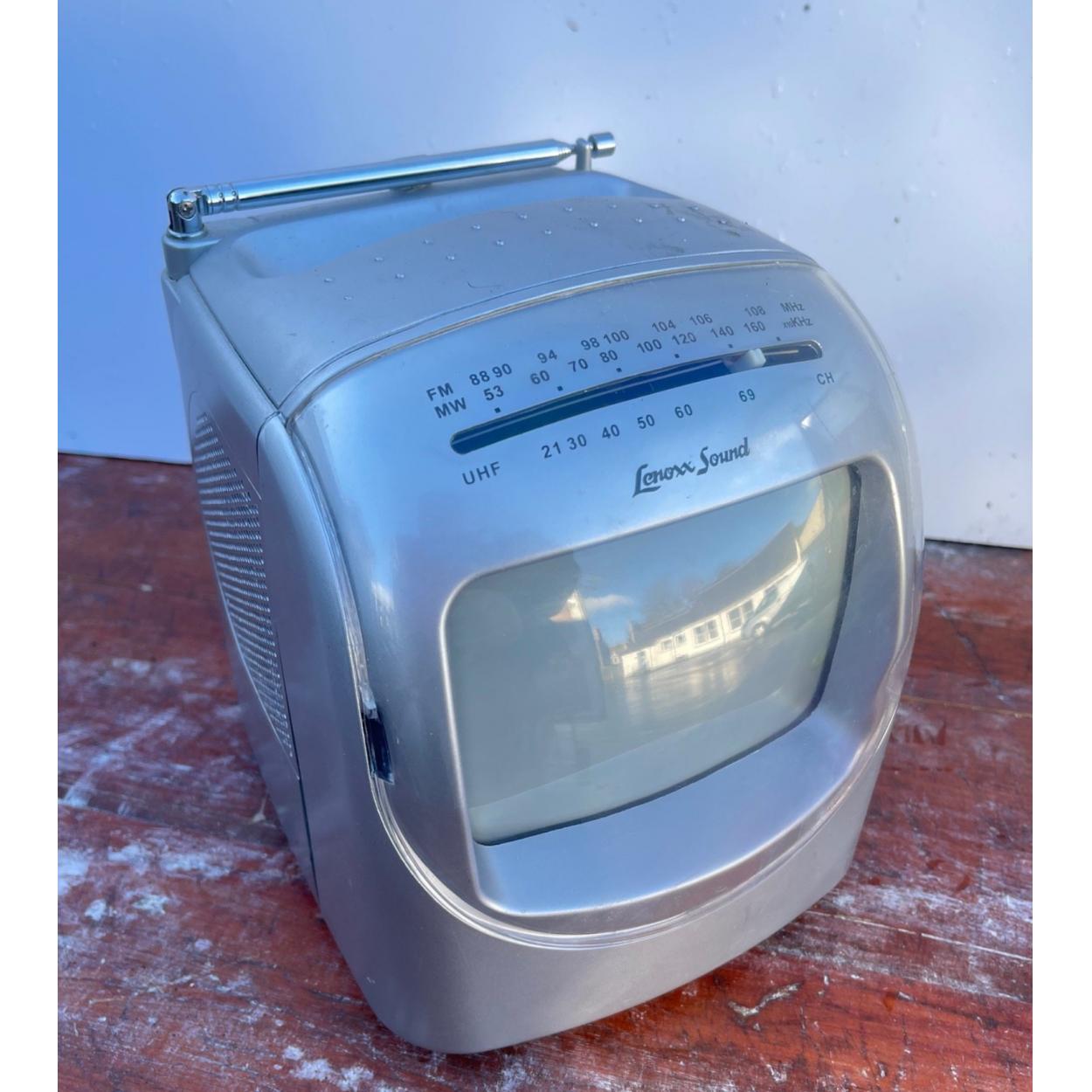 Peebles High School fund raising - A LENOXX Sound TV505 portable television in black and white with built in am/fm radio - comes without a power cable, but easily obtained from the internet.