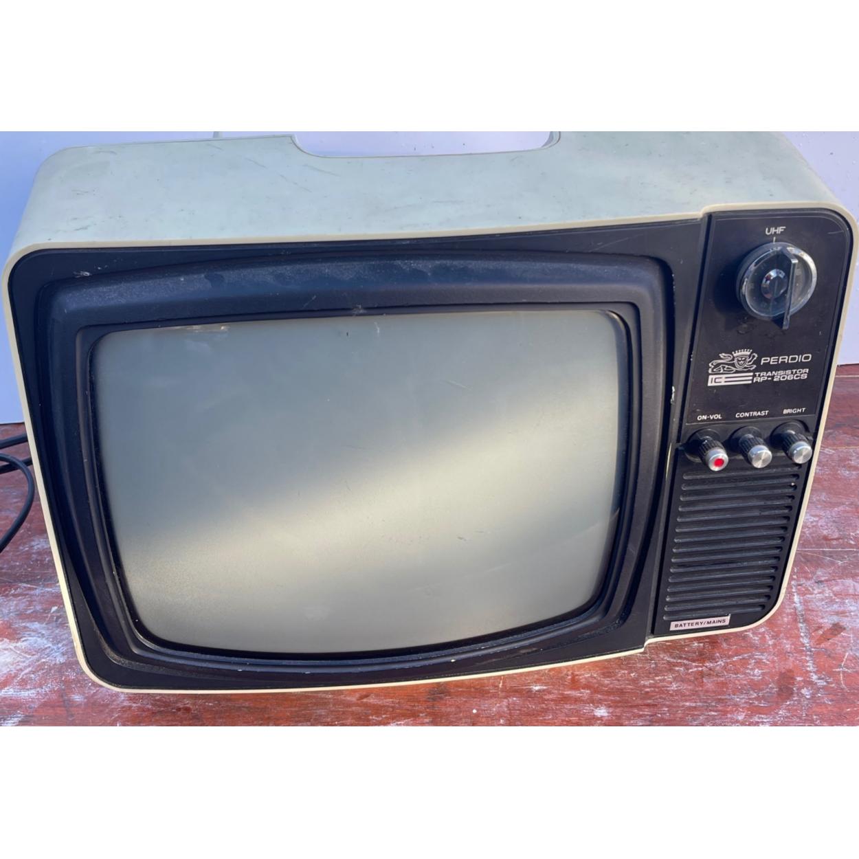 Peebles High School fund raising - A RETRO PERDIO transistor RP 206CS television - can work off batteries or mains - 40cm width x 30cm height x 30cm depth approx - comes with plug