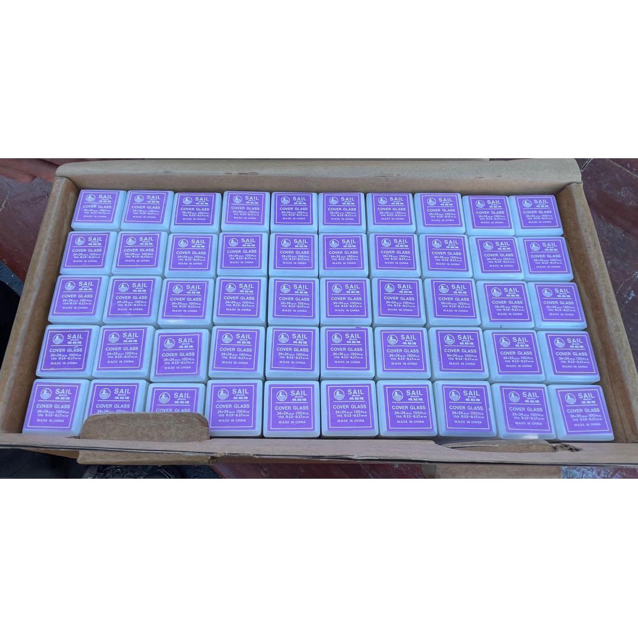 Peebles High School fund raising - A large tray to include a HUGE AMOUNT of assorted laboratory cover glass and three boxes of boiling flasks etc