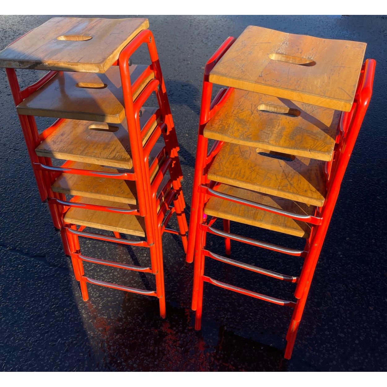 VINTAGE RETRO c1960/70's reclaimed ex-school stacking stools x 6 quantity - height 61cm x width 36cm x depth 46cm approx