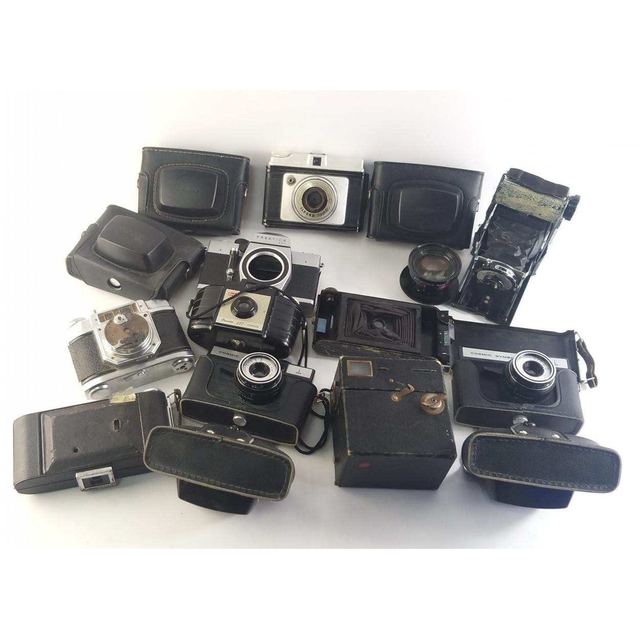 Peebles High School fund raising - a good collection of cameras to include KODAK, ILFORD, PRAKTICA all in state of disrepair. Useful for parts.