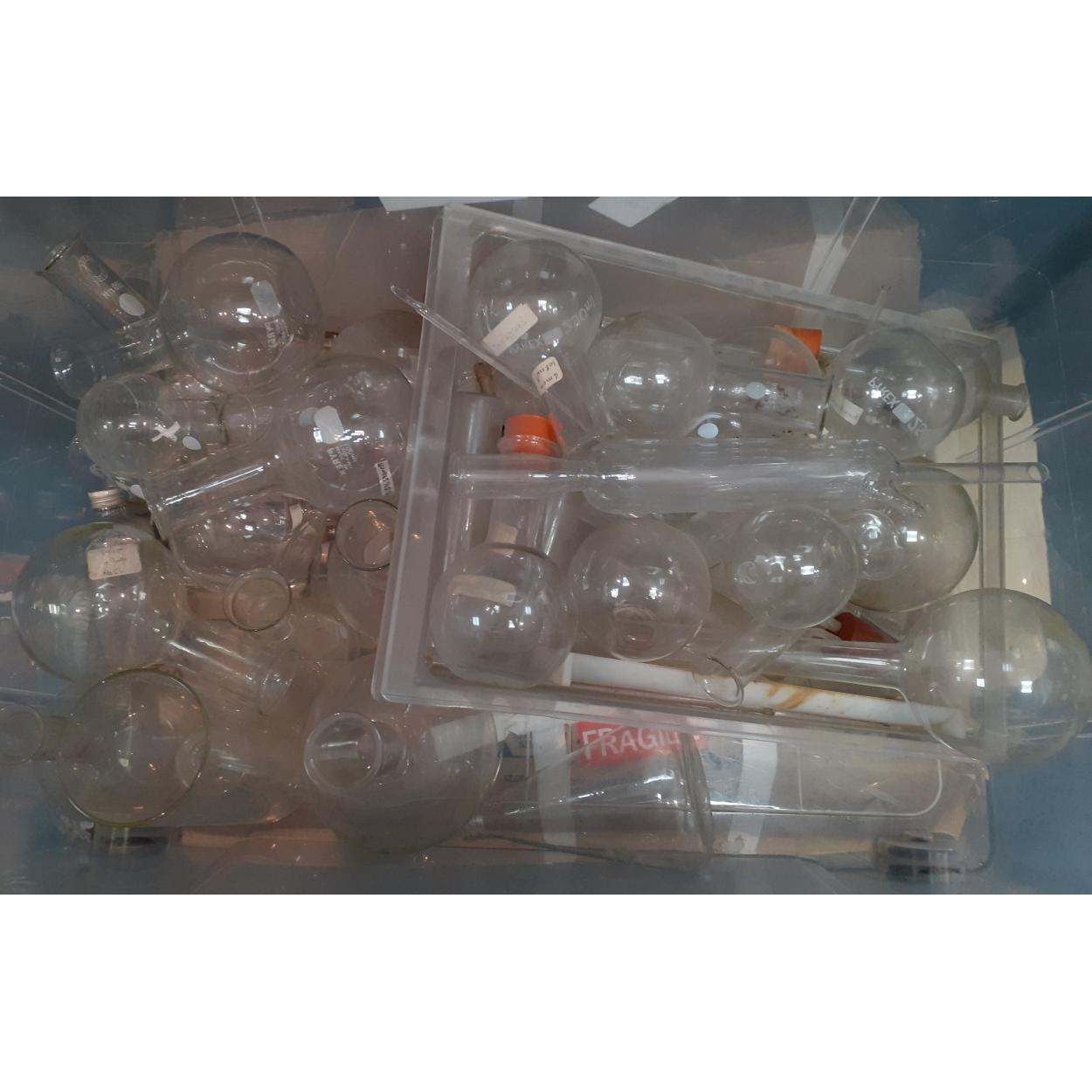 Peebles High School fund raising - A LARGE QUANTITY of scientific lab glassware to include round bottom boiling flasks by PYREX, quite a few volumetric pipettes, and a bottomless lidded jar etc etc - there are lots of lab glass items within this lot