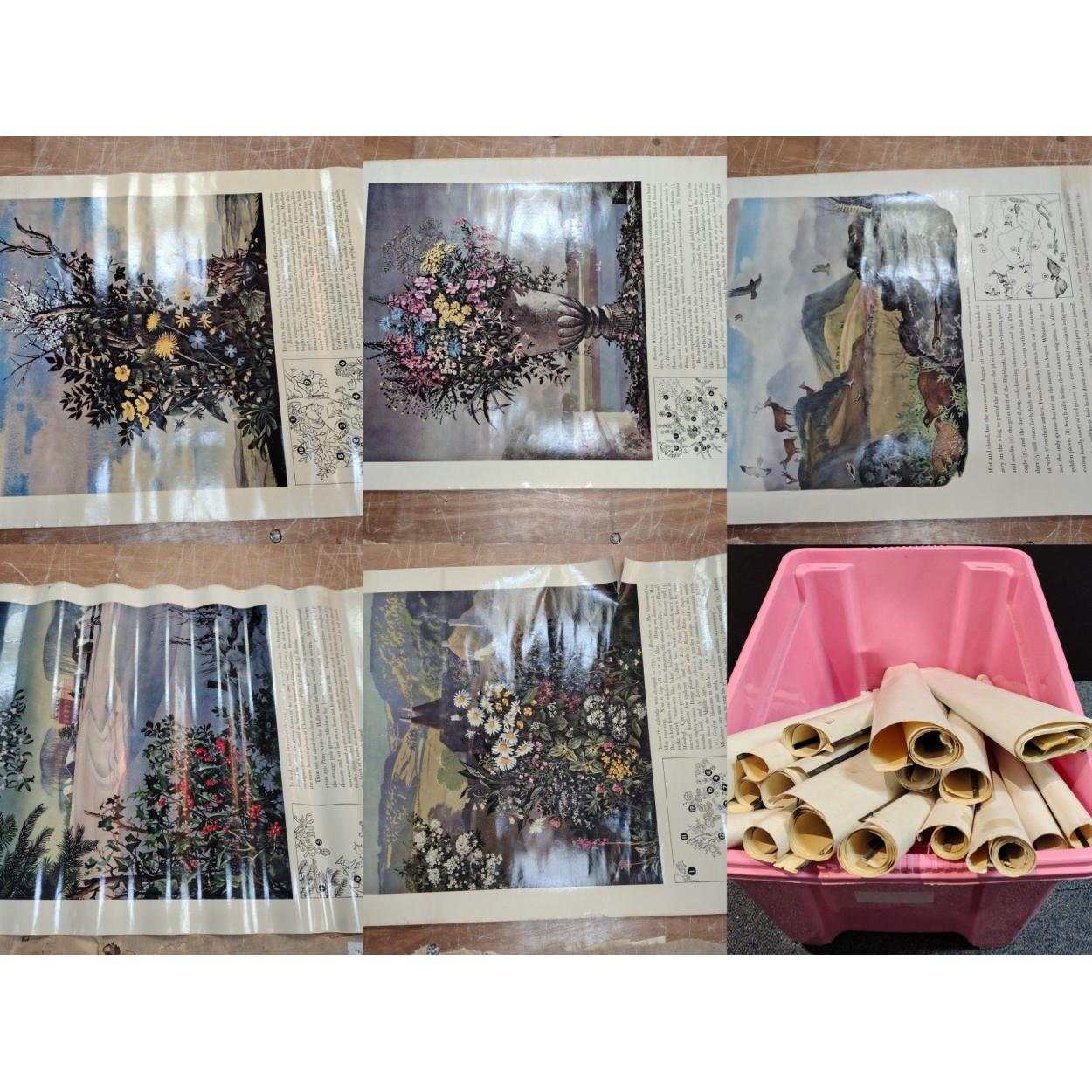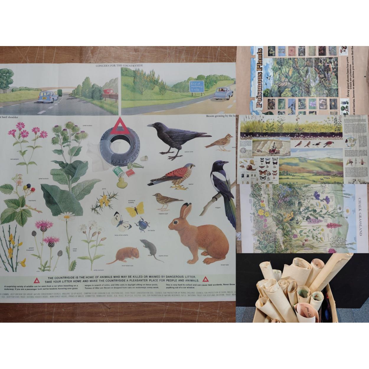Peebles High School fund raising - a mixed box of vintage posters to include poisonous plants, meadows, classification of insects, termites anatomy etc, etc