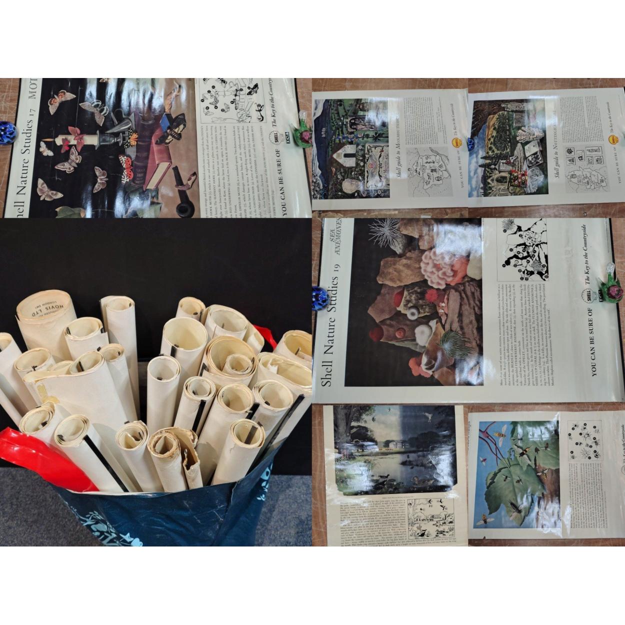 Peebles High School fund raising - vintage SHELL GUIDE posters - SHELLGUIDE to MONTHLY LANES each 74 x 50cm approx. In well-used condition.