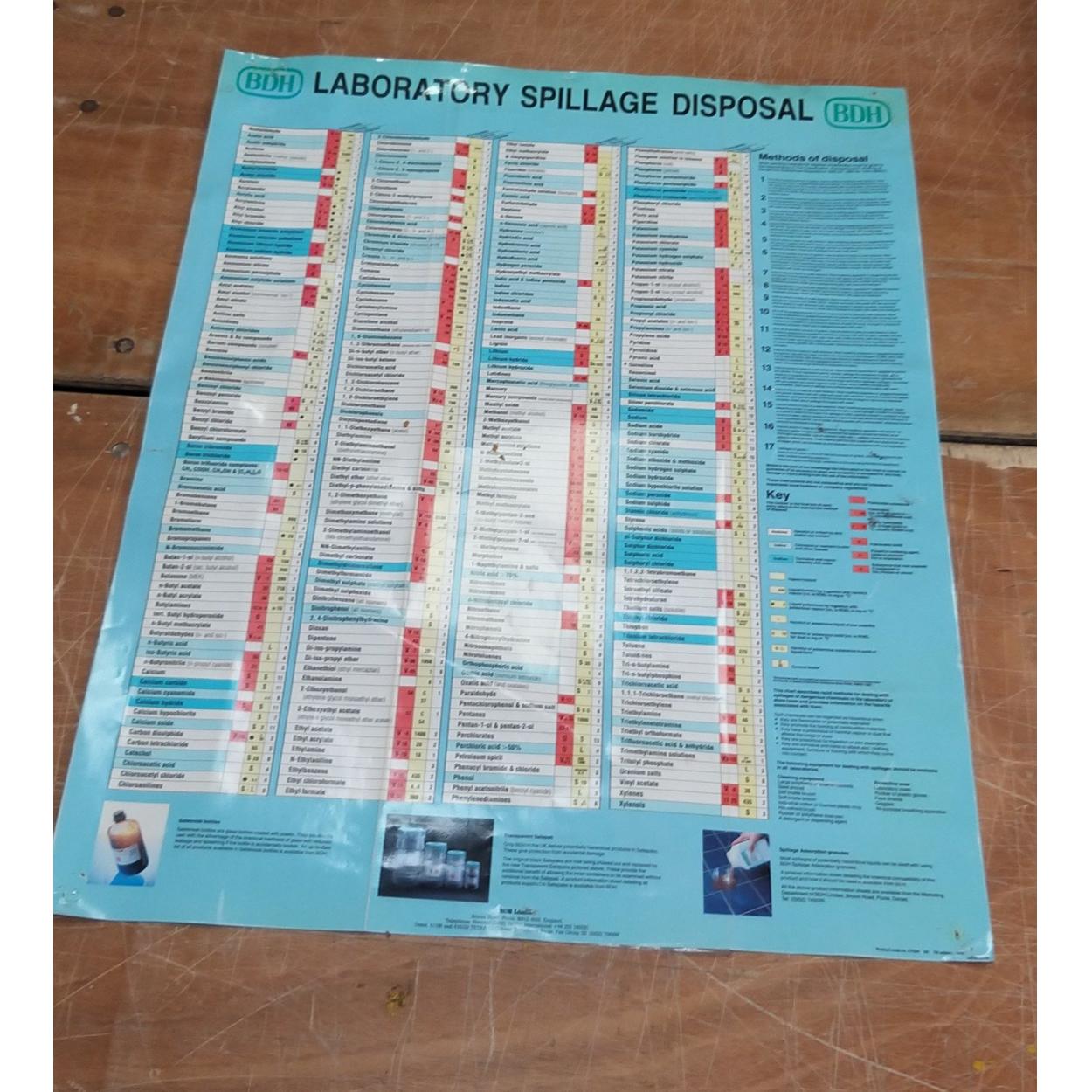Peebles High School fund raising - Science dept - A large SPILLAGE DISPOSAL WALL CHART from circa 1980's - dimension 84cm x 64cm approx