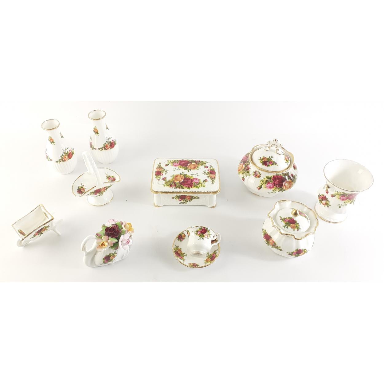 ROYAL ALBERT Old Country Roses accessories to include posy vases, trinket dishes, wheelbarrow etc.