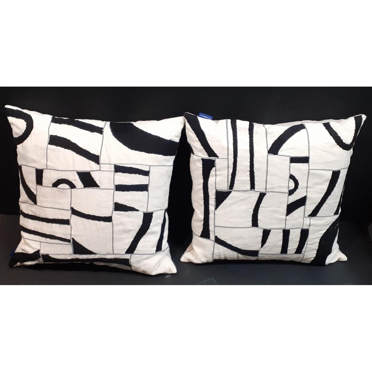 Two CONRAN SHOP abstract cushions 40cm x 40cm approx