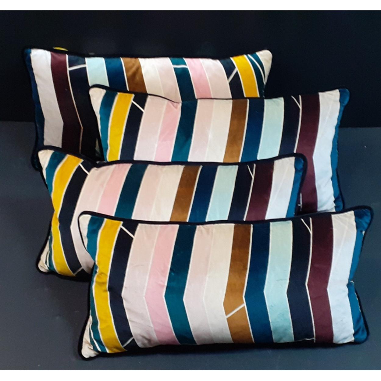 Four CHRISTIAN LACROIX Pietra Dura multicolore cushions, 58 x 26cm approx