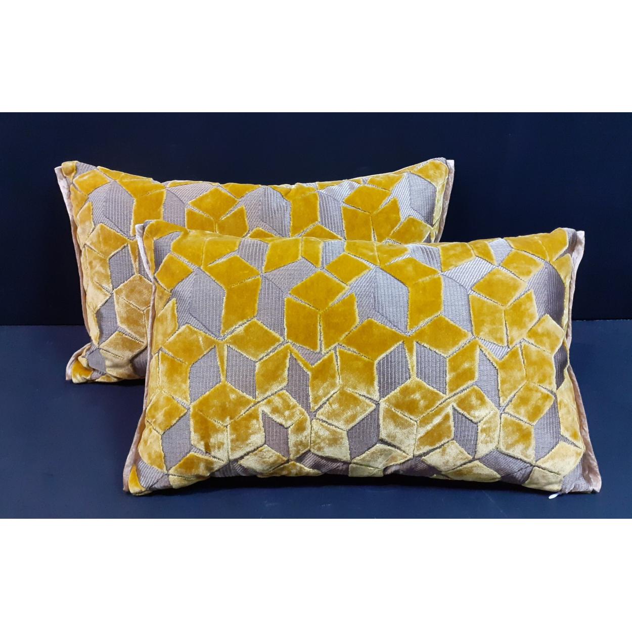 Two DESIGNERS GUILD Fitzrovia Ochre cushions, measure 50 x 30cm approx