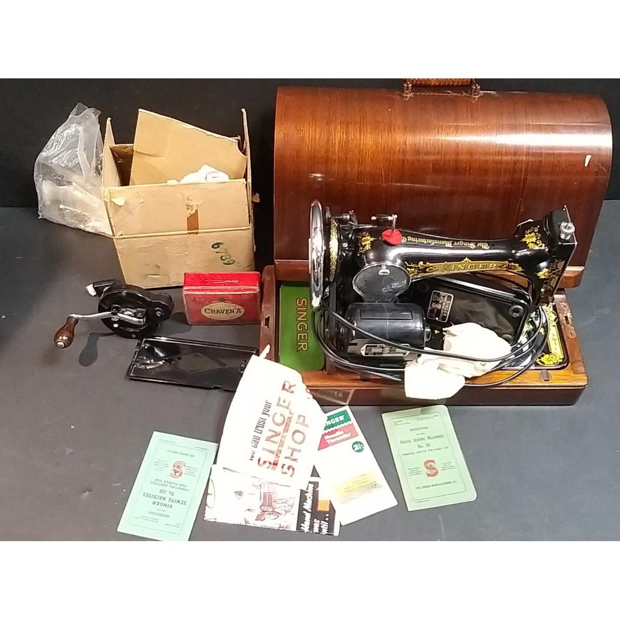 A SINGER sewing machine hand operated with accessories. An attractive piece, case in good order. Gilt crisp.