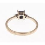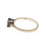 A 9k stamped ring with single red centre stone. Size Q, Gross weight 2.1g approx