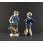 Two ROYAL COPENHAGEN of Denmark attractive figures. Comprising Bi3468 Boy with Teddy and Bi3592 Boy with ball. The tallest 17cm. Both pieces in good undamaged condition.