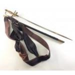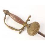 A older brass handled Court dress sword with silk binding and tassles to scabbard. Clamshell grip loose. Blade 70cm long.