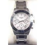 Very stylish ROTARY 'Daytona style' boxed watch in attractive steel case finish. Boxed with paperwork and spare link. Box hinge is broken. A very attractive quality watch and working well.