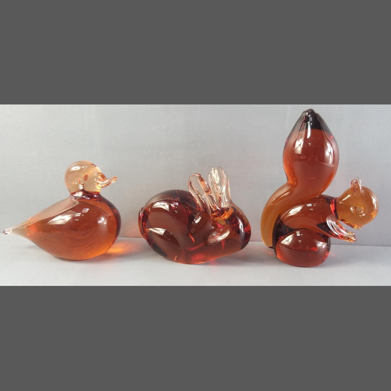 Three wonderful WEDGWOOD glass animals in amber colourway. A squirrel, rabbit and duck all in really nice condition with no chips, cracks etc.