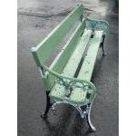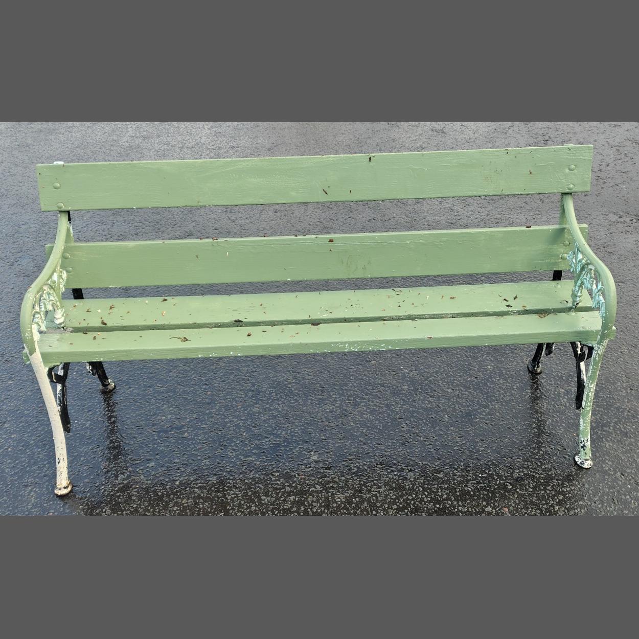 Wrought iron two seater garden bench in good usable condition painted green
