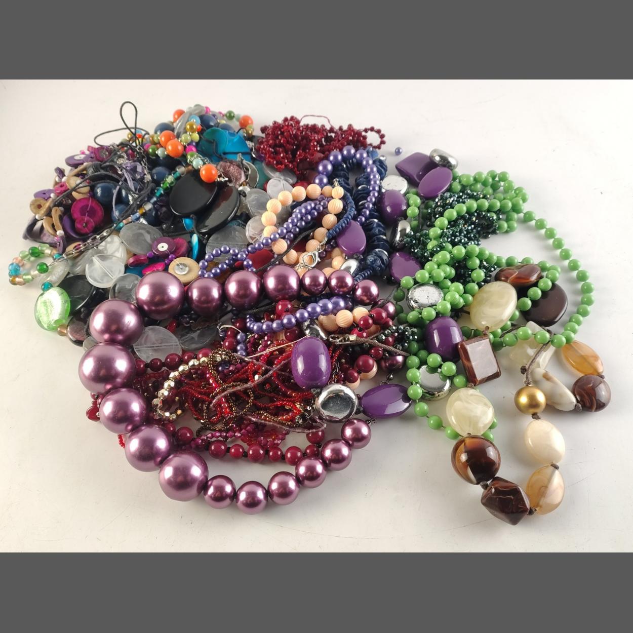 Mixed bag of many attractive beaded necklaces and bracelets.