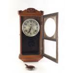 An attractive Japanese Brass movement mechanical wall clock. With pendulum, no key. Untested. Standing 48cm tall. Some wear to finish left side.