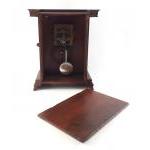 An attractive dark wood carved mantle clock with unnamed brass movement. With pendulum, no key. Untested. Standing 36cm tall.
