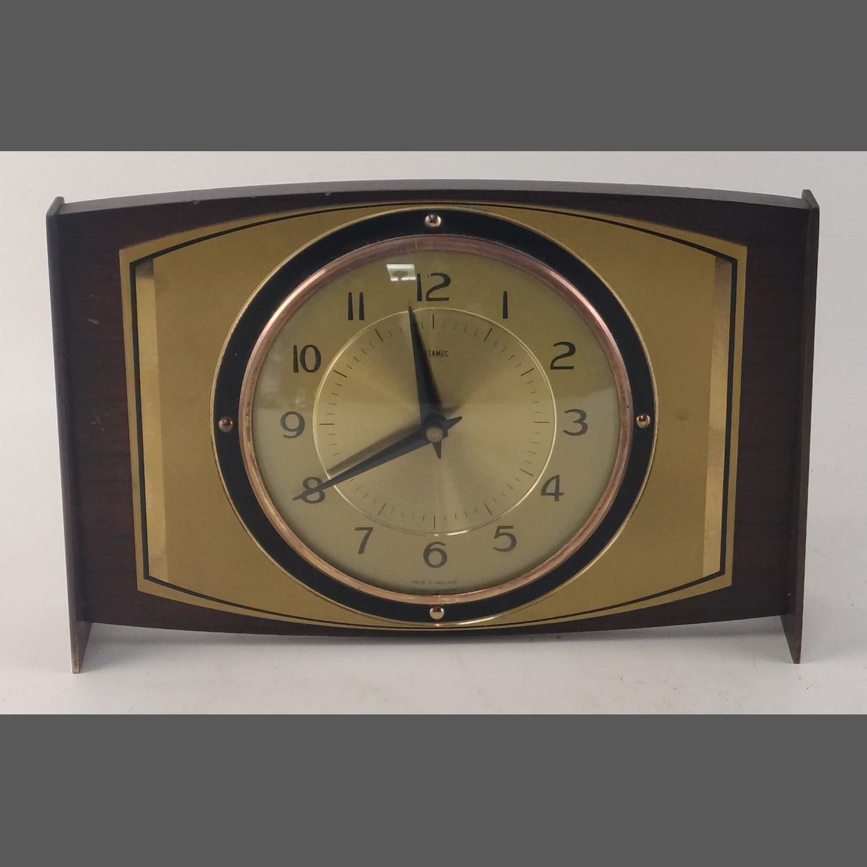 A METAMEC mantle clock with 1967 presentation plaque on rear. 15cm tall.