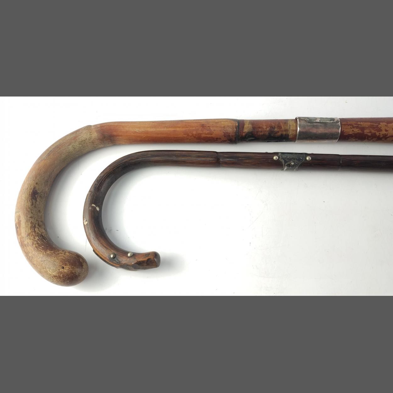 Two antique walking canes both with silver collars. Both 90cm approx and with light wear but useable