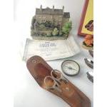 A good mixed ornamental lot. To include a Melba Ware Mr Punch, Danbury Mint model A/F, well stored vintage CASIO calculator, teaspoons, compass, DLI cap badge etc.