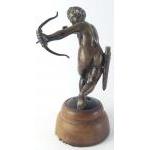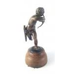 An exceptionally well sculpted small bronze model of Cupid on wooden plinth. Stands 15cm tall. Unsigned.