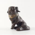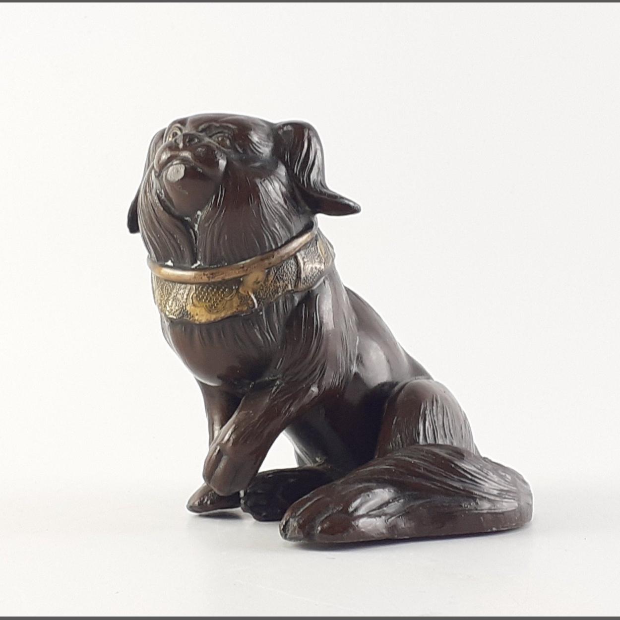 Unusual antique Chinese metal model of a cute little PUG DOG. 11cm tall approx. A very intriguing wee chap, nicely modelled.
