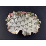 An antique highly ornamental dish with applied floral pieces. Impressive looking piece. 30cm x 22cm. Note some chips to petals at edges. Only mark is 'patent'.