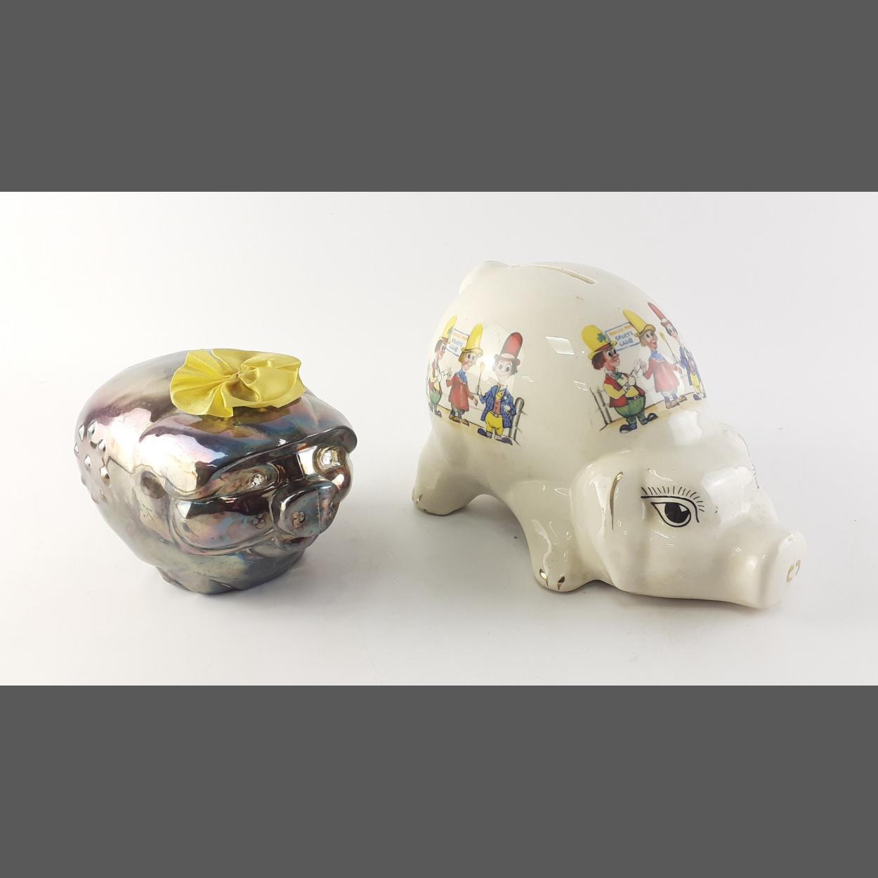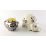 SHERWOOD POTTERY Diddy Men, Treacle Mines Money Piggy Box 18cm approx in good condition. Also one other.