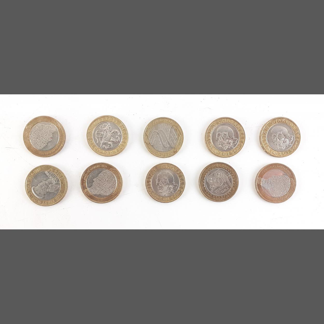 £2 Coins - 10 Collectible assorted varieties circulated. 3 x Charles Dickens, Stephensons Rocket, DNA Double Helix, 4 x Shakespeare,2014 WWI.