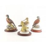 Three pretty bird models in lovely condition on wooden bases. A KOWA Pheasant, 20cm tall. A Snipe and a Kestrel. No damage to tips, beaks, foliage etc.
