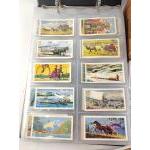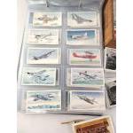 A box with an older collection of tobacco cards. Include many A Senior Service Flying, Railways and others. Also a collectors album with various cigarette and tea cards.