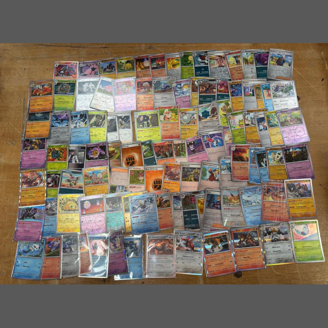 Over 100+ POKEMON collectors cards to include some Hologram cards in separate sleeves - (starting card is Butterfree green card pic), - all cards in an amazing un-played condition