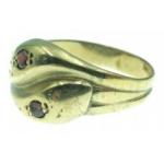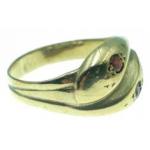 A pretty fully hallmarked twist ring with two small red stones. size R, Gross weight 2.85g approx