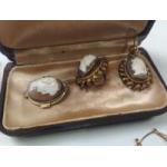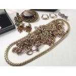 A great collection of antique and gilt bling jewellery, Chains rolled gold etc. Hefty chains, earrings, brooches and a lovely wee old pinchbeck Cameo set.