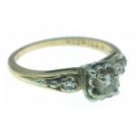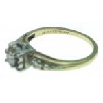 14-18k stamped diamond (tested) ring with supporting diamonds on the shoulders - ring size M - gross weight is a substantial 2.90g approx - the large central diamond measures 3.4mm approx with precise measuring caliper