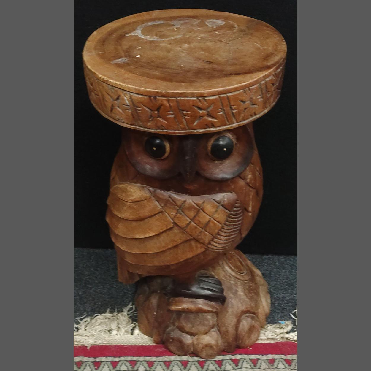 TWIT TWOO. A superb, well carved Owl side table standing 50cm tall. 30cm diameter top. A wise old purchase indeed.