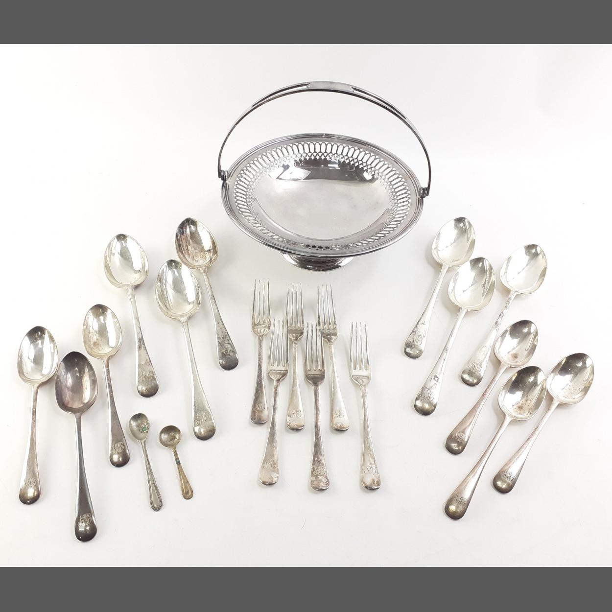 A gorgeous silver plated TAZZA 22cm and a collection of good useable cutlery.