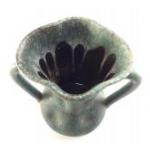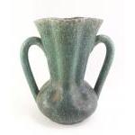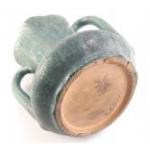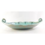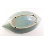 A stylish green two handled pottery jug with marks to the base. Stands 22cm approx. Comes with a very large (55cm) leaf shaped dish.