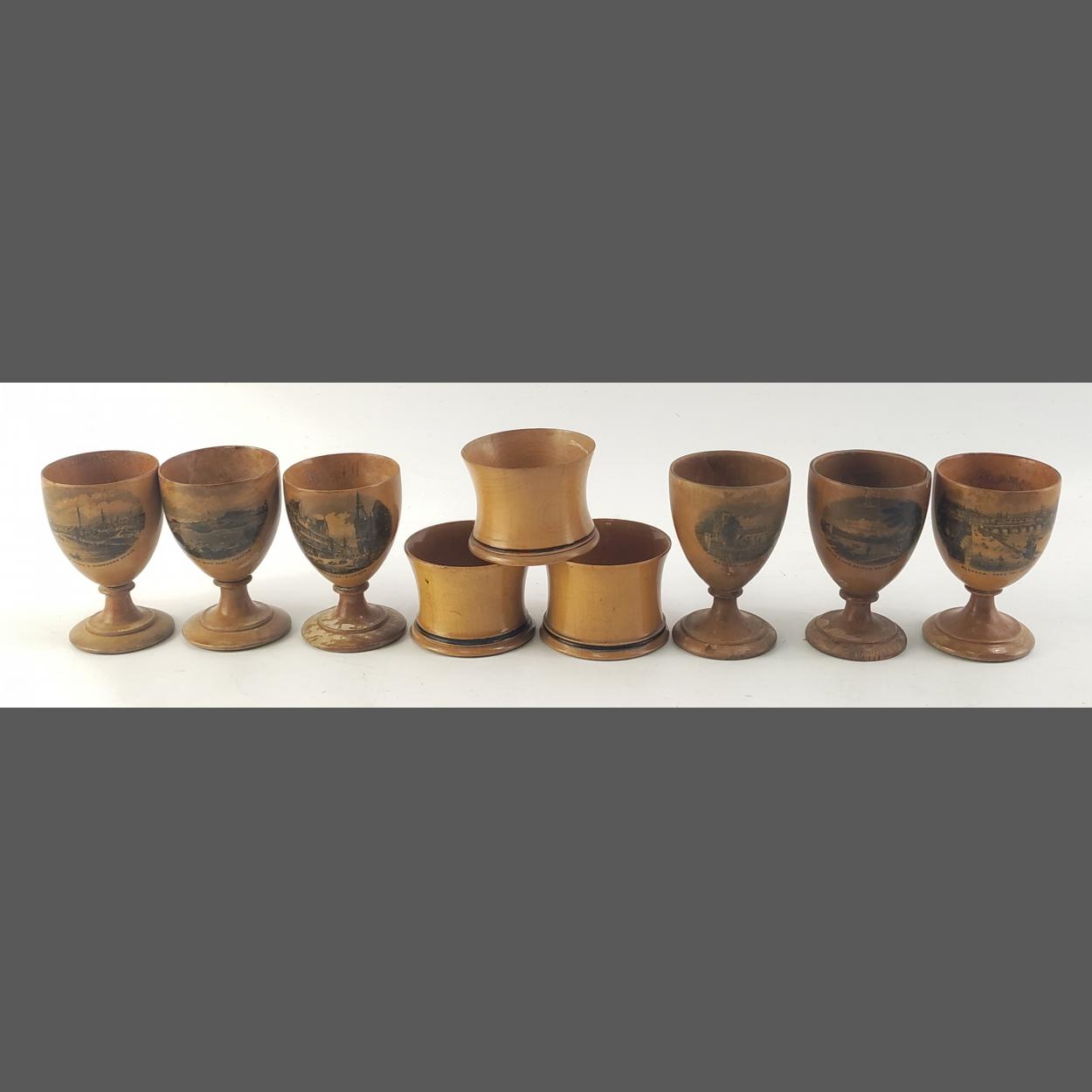 Mauchline Ware Egg Cups x 9. Pretty pieces in good condition.