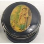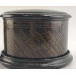 Mauchline Ware cotton reel storage box with motto spinner on side. Also a floral needle case.