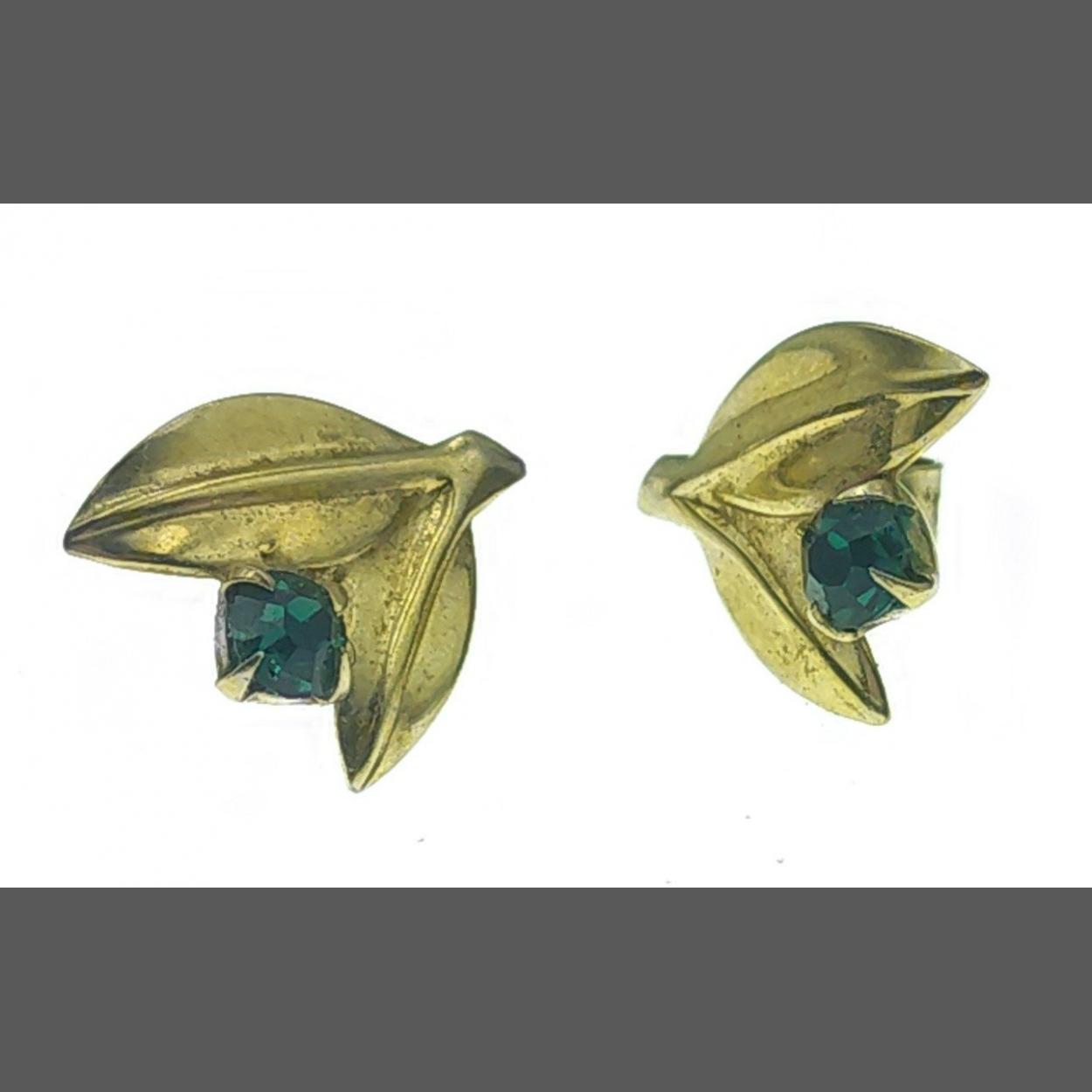 375 hallmarks to shaft. A pair of pretty floral earrings with small green stones. Gross weight 0.9g approx.