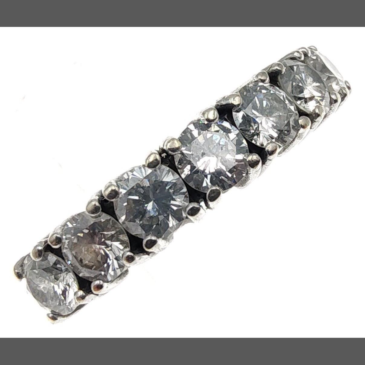 A STUNNING! 7 DIAMOND 18ct stamped engagement ring - ring size Q - weight 2.73g approx