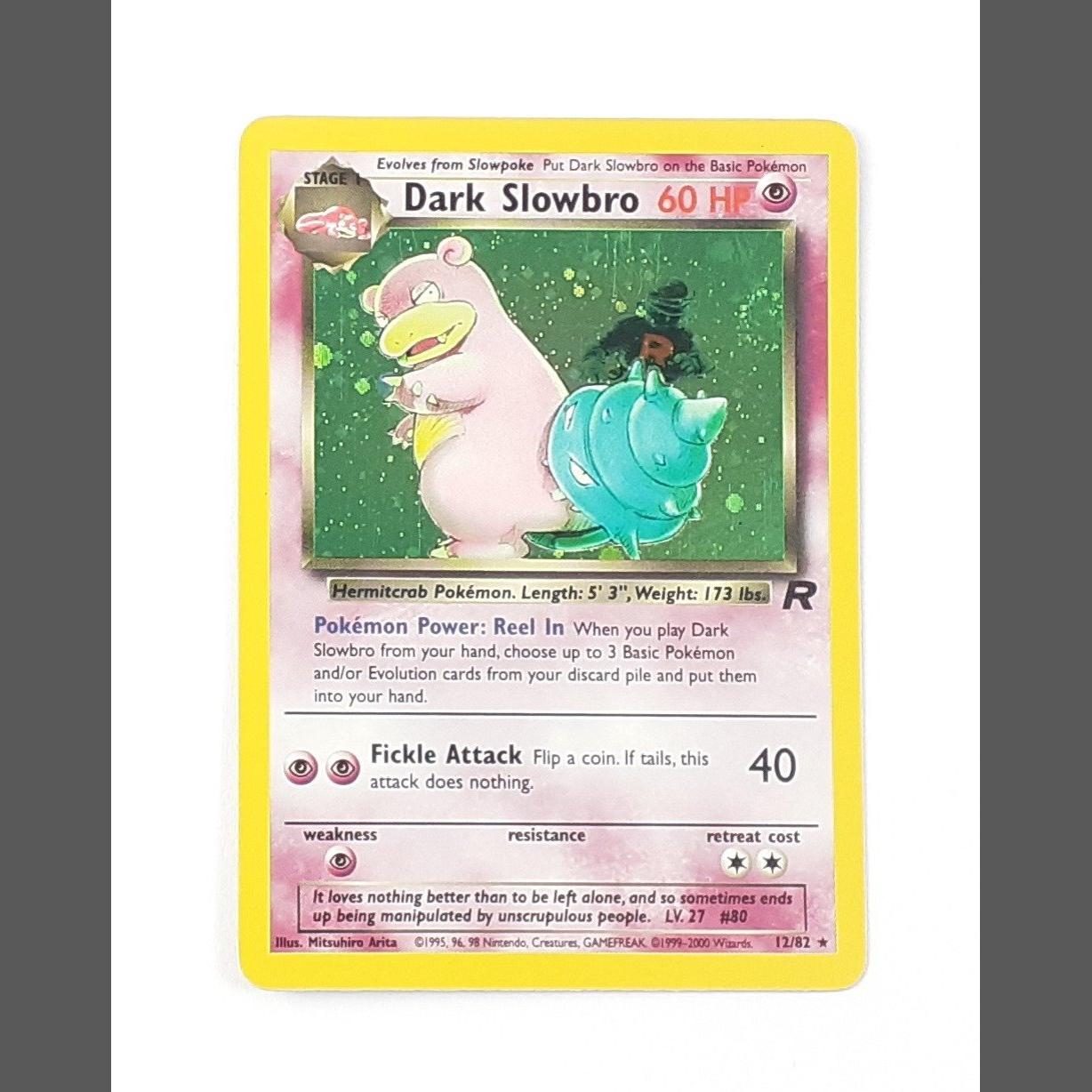 COLLECTABLE POKEMON RARE HOLO - A VINTAGE 2000 POKEMON TCG Team Rocket Set HOLOGRAPHIC DARK SLOWBRO (12/82) trading card - one of the 1st cards for the Pokemon trading card game - the card has never been used and is in near mint condition!
