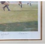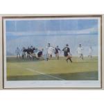 CRAIG CAMPBELL Rugby Print. THE POWER AND THE GLORY. A scene from England versus the All Blacks at Twickenham 1998. Signed by Rory Underwood, Tony Underwood and one other. A large and attractive piece. 73cm x 60cm.
