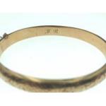 A 9ct stamped antique bright-cut snap-shut bangle with safety chain weight 8.5g approx