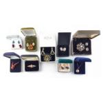 A great selection of good quality jewellery. To include ZEYA Peacock necklace with earrings, Mosiac style vintage earrings, PAVE stone earrings, gilt bar brooch, large pendats. A good lot!