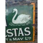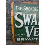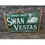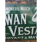 PEEBLES RAILWAY HISTORY! SEE STATION Photograph ATTACHED -From Stobo Station House. A large SWAN VESTAS enamel sign 120cm x 90cm. With wear as expected from this historical piece. As seen on old postcards of the station (see enamel sign in picture) Makers name to bottom central Pat. Enamel Co. Ltd Birmingham & London. Additional info: Further to our conversation yesterday (auctioneer & Vendor) about the double tracks in the image, these tracks were only a temporary measure opened 27/6/06-1920's (for Royal Highland Show at Peebles in the same year) and closed 8/6/21. The second platform was a wooden construction. Information from Peebles Railways by Peter Marshall, The Oakwood Press. However, comment that the signs are more likely to be from the 1930's, given that the station/route went into decline in the 1950's.